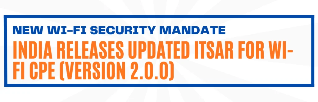 Are your Wi-Fi devices ready for ITSAR 2.0? [Click here to talk to a certification professional] and make sure your products satisfy the most recent national security standards.